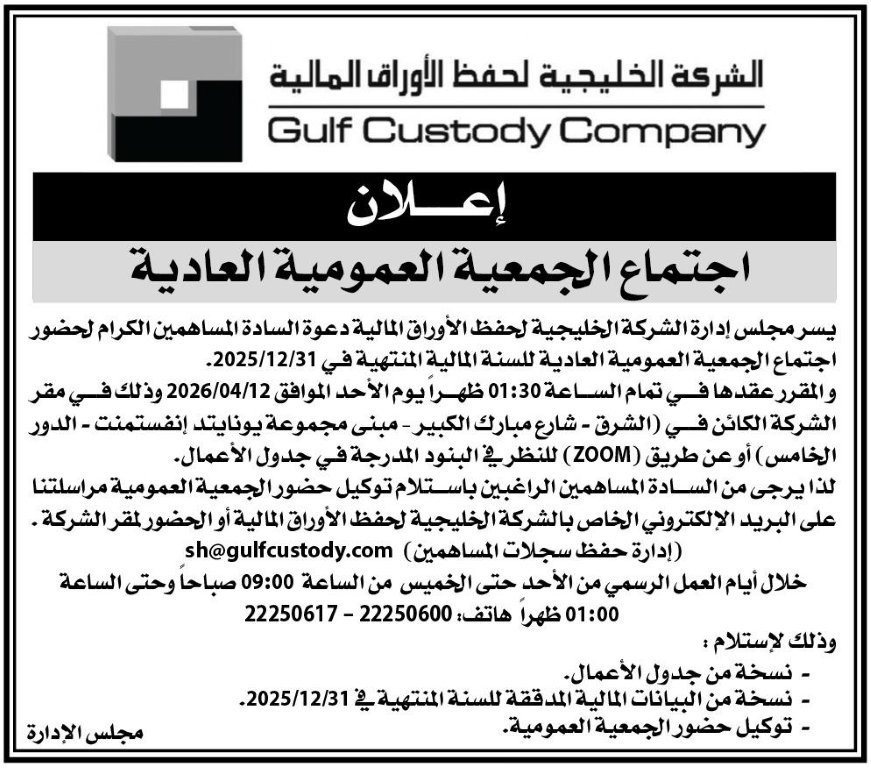 تأسست الشركة الخليجية لحفظ الأوراق المالية ش.م.ك.م. “الشركة الخليجية للمقاصة سابقاً” كشركة مساهمة كويتية مقفلة بتاريخ 13 يناير 2001، وتخضع لأحكام قانون الشركات رقم 1 لسنة 2016